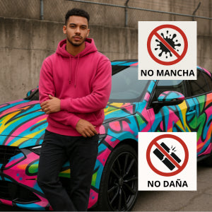 Su fórmula se adhiere momentáneamente a carros, vidrio, paredes y más, dándote libertad total para experimentar.