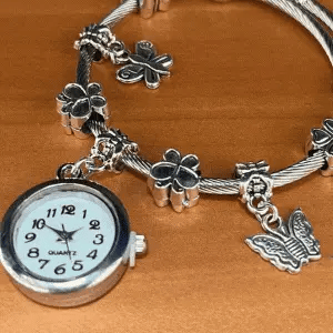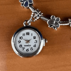 Además de ser una joya elegante, la pulsera cuenta con un reloj pequeño y funcional, perfecto para quienes valoran la puntualidad sin sacrificar el estilo.